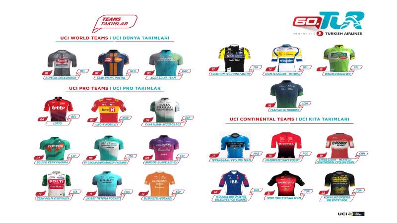 1963 yılında Marmara Turu olarak başlayan, 1965 yılında uluslararası nitelik kazanarak Cumhurbaşkanlığı himayelerine alınan, Türk bisikletinin gelişimine katkı sağlayan 60.Cumhurbaşkanlığı Türkiye Bisiklet Turu’na 12 ülkeden 3 World Tour Team, 13 Pro Team, 6 Continental Team olmak üzere 22 takım katılacak.