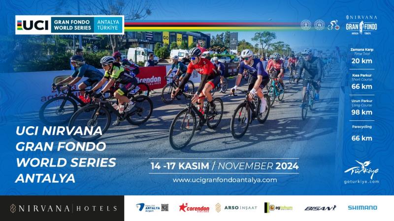 Uluslararası Bisiklet Birliği’nin Gran Fondo Dünya Serisi kapsamındaki uluslararası bisiklet yarışı UCI Nirvana Gran Fondo World Series Antalya etkinliğinde 15 Kasım’da 20 km zamana karşı parkurunda, 17 Kasım’da ise 98 km’lik uzun parkurda ve 66 km’lik kısa parkurda Antalya’nın simge noktalarında nefes kesen mücadelelere sahne olacak. Ayrıca, 66 km’lik kısa parkura Paracycling sporcular da katılacak.