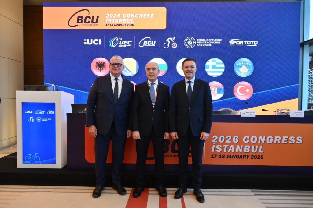Balkan Bisiklet Birliği (BCU) 2026 Kongresi, 18 Ocak Pazar günü İstanbul’da gerçekleştirildi. Türkiye Bisiklet Federasyonu ve Balkan Bisiklet Birliği Başkanı Emin Müftüoğlu’nun başkanlığında düzenlenen kongreye, 12 Balkan ülkesinin delegelerinin yanı sıra Uluslararası Bisiklet Birliği (UCI) Başkanı ve Uluslararası Olimpiyat Komitesi (IOC) Üyesi David Lappartient ile Avrupa Bisiklet Birliği (UEC) Başkanı Enrico Della Casa da katıldı. Kongreye ayrıca T.C. Gençlik ve Spor Bakanlığı Uluslararası Organizasyonlar ve Dış İlişkiler Genel Müdür Yardımcısı İnanç Özçakmak ile Türkiye Bisiklet Federasyonu Başkan Vekili Fikret Hayali, As Başkan Metin Cengiz, Yönetim Kurulu Üyesi Dr. Kenan Güler, Genel Sekreter Mehmet Sedat Fırat ve Projeler Koordinatörü Doç. Dr. Pınar Arpınar Avşar da katıldı.