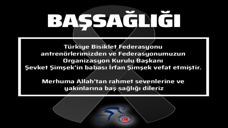 Türkiye Bisiklet Federasyonu antrenörlerimizden ve Federasyonumuzun Organizasyon Kurulu Başkanı Şevket Şimşek’in babası İrfan Şimşek vefat etmiştir. Merhuma Allah’tan rahmet sevenlerine ve yakınlarına baş sağlığı dileriz