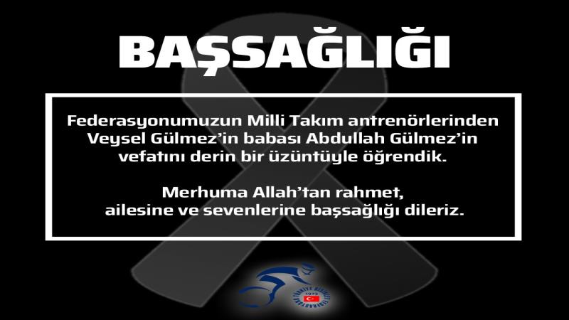 Federasyonumuzun Milli Takım antrenörlerinden Veysel Gülmez`in babası Abdullah Gülmez`in vefatını derin bir üzüntüyle öğrendik. Merhuma Allah’tan rahmet, ailesine ve sevenlerine başsağlığı dileriz.