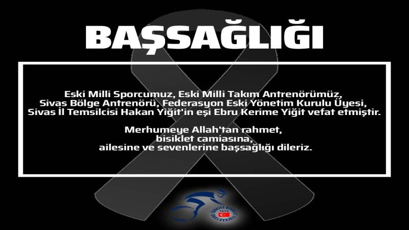 Eski Milli Sporcumuz, Eski Milli Takım Antrenörümüz, Sivas Bölge Antrenörü, Federasyon Eski Yönetim Kurulu Üyesi, Sivas İl Temsilcisi Hakan Yiğit`in eşi Ebru Kerime Yiğit vefat etmiştir. Merhumeye Allah`tan rahmet, bisiklet camiasına, ailesine ve sevenlerine başsağlığı dileriz.